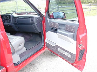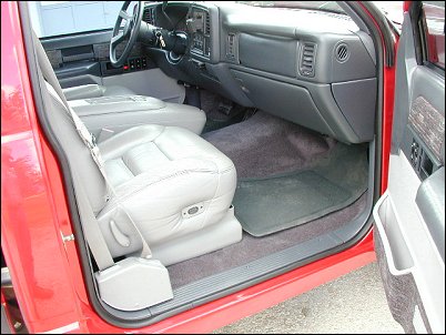 - Interior Details June Update The interior of the truck is now about 98% complete. I still need to decide what to do about a stereo/CD player, mount the functional 1989 HVAC controller in a permanent location, and complete a trim panel around the lower half of the steering column. As you can see in this photo, the 1995 Suburban leather seats, console, graphite carpet and trim panels have been installed.