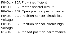 Cooled EGR: EGR flow is controlled by the LLY's brand new E60 ECM and digitally controlled EGR valve, with programming that takes into account the heat load imposed on the engine's cooling system by the hot exhaust gases. EGR flow can occur when IAT (intake air temperature) is above 41.5°F and with an engine temperature between approximately 140°F and 211°F. Terminating EGR flow above 211°F helps to preserve the cooling ability of the engine. The EGR stepper motor and control valve assembly are serviceable, and new OBD II diagnostic procedures allow the technician to monitor/test the operation of the EGR. EGR flow is disabled if any of the EGR related DTC's are set.