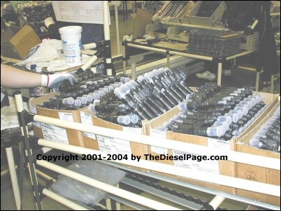General Motors has extended the Duramax 6600 fuel injector warranty coverage for owners of all 2001, 2002 & 2003 model-year Chevrolet and GMC Duramax 6600 equipped pickup trucks and 2003 medium-duty trucks. Issued 10/10/2006, GM Document ID#1866141 & recently #04039B indicates that additional injector warranty coverage is now available for a period of 7 years from the date the vehicle was placed into service or 200,000 miles - whichever occurs first. Note: This warranty extension for the Duramax LB7 fuel injectors has expired, but this page remains to provide historical context. The lower photo was taken at the DMAX engine production facility located in Moraine, Ohio in March of 2001 during our first tour of the plant (TDP photo). These are boxes of new LB7 Duramax fuel injectors, ready to be installed in new engines. The above photo shows a cut-away of an LB7 fuel injector (Ron Wong photo). ![]() This was a no-cost warranty extension, and owners may have been eligible for service cost reimbursement if their vehicle required fuel injector(s) replacement that was not covered by the original 5-year or 100,000-mile engine coverage. Reimbursement for a prior injector replacement was limited to the cost equal to that when performed by an authorized General Motors service center. Your local servicing dealer helped with claim forms and assistance in determining coverage. Two distinct types of failures were mentioned in the special policy as being included in this new extended warranty - high fuel return rates due to cracked injector bodies and/or ball seat erosion. Other types of failures are not mentioned, and coverage and/or reimbursement for any other type of failure under this special policy will be determined by your servicing dealer. GM recommends following Corporate Bulletin Number 04-06-04-007A for injectors diagnosed with high fuel return rates. GM specifically directs its dealerships not to replace all 8 injectors for any complaint other than high fuel return rates. Other types of injector failures are "fix as failed", meaning the individual faulty injector will be replaced - not all eight. Cracked injector bodies and/or ball seat erosion can result in the illumination of the SES (Service Engine Soon) lamp, low power, hard starting, or fuel dilution of the crankcase oil. It is my understanding that GM identified these problems early, and worked with Bosch (fuel injector manufacturer) to correct the problem. Please contact your local dealer or call GM's customer assistance center at 1-866-996-9463 if you have any remaining questions. TDP