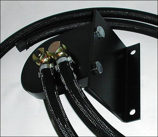 The included powder-coated bracket conveniently bolts onto the engine using two of the existing air conditioning compressor mounting bolts.